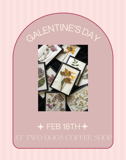 Have a date night with a friend! We’ll guide you through how to design pressed flower picture frames while you enjoy your favorite Two Dogs latte!